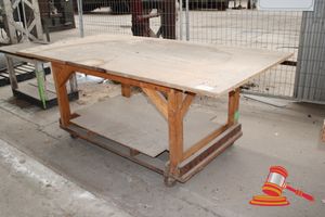 TIMBER WORKSHOP FLATBED TROLLEY, MARKED 12ARHS, APPROX 1530mm L x 770mm W x 540mm H