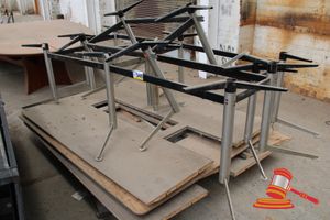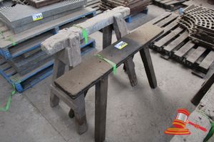 PALLET CONTAINING 2 x HEAVY DUTY STEEL AND TIMBER WORK HORSES, ON STEEL BASE, APPROX 1500mm W x 600mm D x 1000mm H