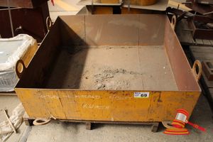 METAL OFF-CUT BIN WITH LIFTING HOOKS, APPROX 1310mm W x 1240mm D x 360mm H