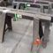 2 x TIMBER WORKSHOP SAW HORSES: 1 x MARKED NO. 118, APPROX 2440mm W x 750mm H AND 1 x 3050mm W x 750mm H