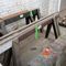 2 x TIMBER WORKSHOP SAW HORSES, APPROX: 1 x 1060mm W x 800 AND 1 x 3760mm W x 790mm H