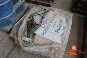 PALLET CONTAINING METAL SIGN MARKED DON'T RUBBISH THE WORKSHOP - PLEASE USE BINS; 1 x PLASTIC METER BOX PIT LID AND OTHER MISCELLANEOUS ITEMS