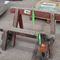 2 x TIMBER WORKSHOP SAW HORSES, APPROX: 1 x 1520mm W x 800 AND 1 x 1160mm W x 820mm H