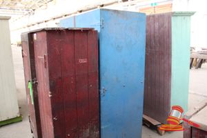 TIMBER WORKSHOP CABINET, SINGLE DOOR WITH PRODUCTION BOARD ATTACHED, MARKED - NOT STARTED, IN HAND, COMPLETE, APPROX 860mm W x 520mm D x 1545mm H