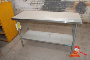 SMALL STEEL TABLE, APPROX 610mm L x 460mm W x 630mm H