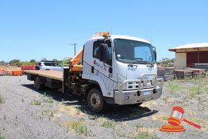 6 SPEED MANUAL, ODO -287, 043 KM, REG.1CXY 054 (EXP 31.07.23 ) VIN JALFSR34787000217 ENGINE 6HK1472638 6 CYLINDER DIESEL (WHITE) GVM 14000 GCM 20000 INCLUDES: ALLOY BULL BAR 2 x DRIVING LIGHTS, 2008 EFFER KNUCKLE BOOM CRANE MODEL 95 3S, 7m STEEL CHECKER PLATE TRAY, TOW ASSEMBLY, U/TRAY WATER TANK AND STORAGE BOX, TWO WAY, FLASHING LIGHTS, NEXT SERVICE (STICKER) DUE 295,000KMINSPECTION NOTES: MINOR STONE CHIPS AND PAINT SCRAPES, MINOR CORROSION SPOTS ON BACK OF CAB, WEAR/CORROSION AREAS ON TRAY, GLOVE BOX WON'T CLOSE, REAR VISION MIRROR MISSING, CAB HAS HAD RE SPRAY, GLASS - GOOD, UPHOLSTERY - FAIR, FLOOR - FAIR, CONTROLS/DASH - FAIR, ROOF FAIR, TYRES 50% (288225)