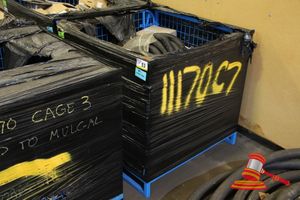 IBC CAGE CONTAINING QUANTITY OF VARIOUS SPARES INCLUDING: FUEL CANS, TOOL CASES, ETC, (504330)