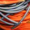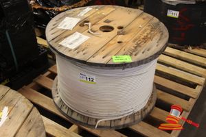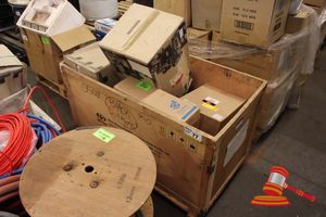 PALLET CONTAINING QUANTITY VARIOUS CORRUGATED CONDUIT, PATCH CORDS, A/V LEADS POWER CORDS, ETC