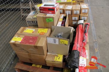 PALLET OF CAR SPARES INCLUDING: AM/FM AERIAL, LIEBHERR JOYSTICK, EXTINGUISHER BRACKETS, SONY FM/AM CD CAR RADIO, NARVA LED COMBINATION LIGHTS, BANLAW CAPS, CATERPILLAR O-RING SEALS IM-9015, (B5122865 PERTH WAREHOUSE)