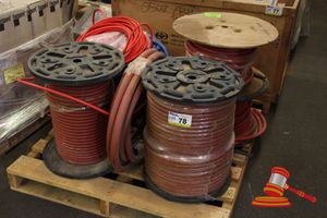 PALLET CONTAINING COILS AND DRUMS OF GENERAL PURPOSE HOSE - INCLUDING SHORT LENGTHS OF BLUE POWER 12.5mm, 400 PSI HOSE RED COILS OF TOTAL FLEX 16mm HOSE, COIL OF RYCO SPIDERLINE 3/16 - 03 DNS 3000 PSI, ETC - ALL UNKNOWN LENGTHS