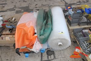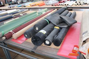- ASSORTED ROLLS AND OFFCUTS OF UNUSED CANVAS, PVC, SHADE CLOTH, WEED MATTING