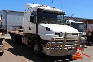 WHITE, 6X4, MANUAL, P/S, A/C, DIESEL, REG# 1DZO882 LIC: 7.2.23, ODO# 140,115 KMS SHOWING ON CLOCK, VIN# YS2T6X40001276058, ENG# 6150511, 2 X FUEL TANKS, ALUMINIUM BULLBAR, SPOTLIGHTS, STONEGUARD, SUNVISOR, SLEEPER CAB, LARGE WHITE TOOLBOX BEHIND CAB, TOOLBOX UNDER TRAY, PINTAL HITCH, SPARE WHEEL, KEY# 91 (WP879)CRACK IN WINDSCREEN (STAR) DRIVERS DOOR WILL NOT OPEN, WIRES LOOSE ON PASSENGER DOOR, DOOR HANDLES MISSING, FRONT INNER GUARDS MISSING, WIND DEFLECTOR (FIBREGLASS) BROKEN, STEPS REMOVED PASSENGER SIDE, CRACK TO LHF INDICATOR PANEL, LH WIND DEFLECTOR DAMAGED