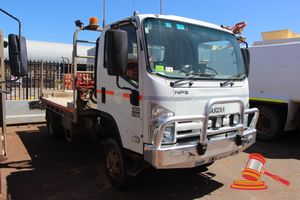 WHITE, 4X2, NH NP RCB B01, MANUAL, P/S, A/C, DIESEL (REG# UNLIC) ODO# 152,852 KMS SHOWING ON CLOCK, VIN# JAANPR75H87105913, ENG# 4HK1812678, BULLBAR, ALUMINIUM TRAY, 2 X ALUMINIUM TOOLBOXES, SPARE WHEEL, BEACON, IS31, KEY# 146 (WP1042)BRAKE ISSUE, BATTERIES FLAT, ALTERNATOR ISSUE