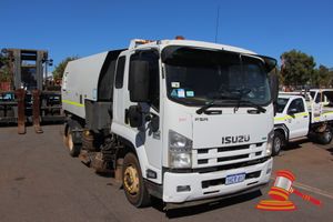 WHITE, 4X2, AUTO, P/S, A/C, DIESEL, REG# 1HCR813 LIC: 16.8.23, ODO# 73,872 KMS SHOWING ON CLOCK, VIN# JALFSR34JE7000029, ENG# 6HK1653290, GVM: 14,000 KG, GCM: 15,000 KG, DUAL ACTION CENTRAL STEERING WHEEL, REVERSE CAMERA DISPLAY, HIGH PRESSURE GUN & HOSE REEL, 3 X SWEEPER BRUSH HEADS, SMALL WORKLIGHTS, BEACONS, TOW WAY, ISOLATOR, SEAT COVERS, 2014 MACDONALD JOHNSTON RT665 TS 022045 SWEEPER BODY, SW1, KEY# 137 (WP885)LARGE DUCTED HOSE ON REAR CRACKED, CORROSION TO VAC PLATE, CHIP TO FRONT WINDSCREEN, RHF CORNER FENDER BENT