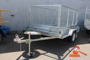 GALVANISED/SILVER, SINGLE AXLE, 7 PIN RECTANGULAR TRAILER PLUG, REG# 1TYL393 LIC: 2.5.23, VIN# 6U9VSS00000228871, JOCKEY WHEEL, SPARE WHEEL, CAGE OPENS FRONT & REAR, CAGE REMOVABLE, DROP DOWN FRONT & REAR LOAD GATES, RUNNING BOARDS & TIE DOWN POINTS ON EITHER SIDES (WP1166)