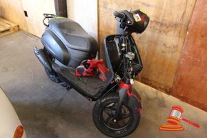 BLACK, AUTO, PETROL, REG# UNLIC, ODO# 1020 KMS SHOWING, VIN# RFGAW12WYKX029530, NO KEY (WP1155)FRONT PANEL DAMAGED, 1 X SECTION PANEL LOOSE ON FLOOR, IGNITION BARREL LOOSE IN SEAT COMPARTMENT, SIDE MIRRORS MISSING