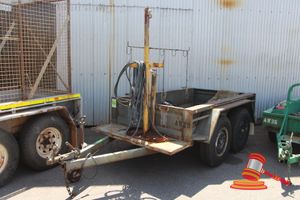 GREY, TANDEM (REG# UNLIC) VIN# 6A4T2080JPT010434, JOCKEY WHEEL, 7 PIN ROUND TRAILER PLUG, GAS BOTTLE MOUNTS, PURPOSE MADE FRAME ON 1 X SIDE OF TRAILER, AW30 (WP1148)RUST/SURFACE RUST EVIDENCE TO AREAS