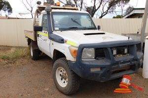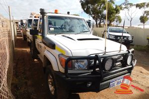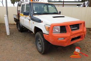 WHITE, 4X4, MANUAL, P/S, A/C, CRUISE CONTROL, ROOBAR, SPOTLIGHTS, 2 WAY, ROPS, TRAY, LIGHT BAR WITH F/LIGHT, WORKLIGHTS, REV CAMERA, SUSPENSION UPGRADE, FIRE EXTINGUISHER, TOWBAR, DUAL FUEL, ROOF CONSOLE, REG NO - KBC88AJ (LIC 1/4/2023) ODO - 332,656KMS SHOWING, ENGINE# 1VD0035033, VIN# JTELV73J709002623 (DR#) (A/NO-LV002) (*NOTE - ASH TRAY MISSING, SMALL CHIP IN WINDSCREEN, SMALL DENT DRIVERS DOOR AND FUEL CAP AREA, UNDER TRAY, WATER TANK, K&N AIR FILTER, DUAL BATTERIES, BATTERY ISOLATOR*)