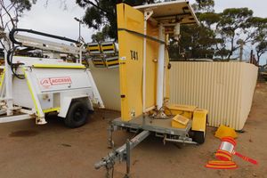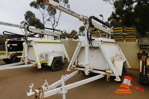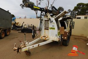 WHITE /BLACK, SINGLE AXLE, 4 CYLINDER DIESEL, 5 HEAD, HALOGEN L/TOWER OPEATED MAST & LEGS, JOCKEY WHEEL, FIRE EXTINGUISHER, KUBOTA POWERED, CABLE/INERTIA BRAKES, REG NO - (UNLIC) ODO - 23917HRS, VIN# HG12120915 (A/N- LP113) (DR#5868)