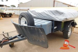 GREY, SINGLE AXLE, REG# 1TUQ808 LIC: 31/10/23) VIN # 6T9T20R04A074T006, ANNEXE, GAS STOVE, SPARE TYRE, LG STORAGE BOX, STONE GUARD, GERRY CANS x 2, 2 - 4KG GAS BOTTLE HOLDERS - 1 BOTTLE, TRIGG HITCH WITH TONGUE, JOCKEY WHEEL, BRAKES, FUEL TANK, BOX WITH LID, STORAGE BOX, WATR TANK, DROP DOWN, STABILISERS