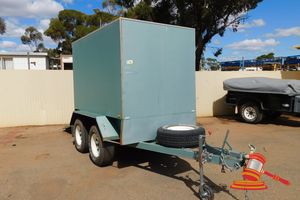 GREEN, TANDEM DUAL AXLE ENCLOSED TRAILER WITH ACCESS RAMP, SPARE TYRE, JOCKEY WHEEL, DRUM BRAKES FRONT AXLE, HANGING RACKS INSIDE, REG NO - (UNLIC) VIN# 6T9T27WA1C09Z9005 (DR#) (*NOTE - SOME STONE CHIPS IN PAINT*)