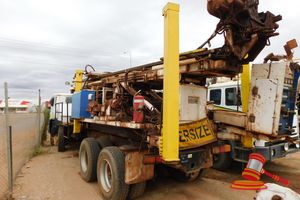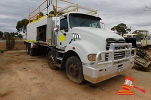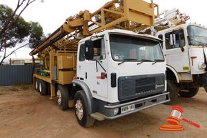 REG NO - (UNLIC) ODO - 851,779 KMS SHOWING, VIN# 6F2262200PDZ10281, WITH ALMET MASTERS BUILT HYDRAULIC AIR DRILL RIG (CIRCA 2005), COUPLED WITH A SULLAIR 150PSI COMPRESSOR POWERED BY 6 CYLINDER DETROIT TURBO DIESEL ENGINE, RIG INCLUDES HYDRAULICALLY OPERATED CAROUSEL FOR RODS, HYDRAULIC WRENCH FOR DRILL PIPE CONNECTION & DISCONNECTION, CYCLONE FITTED, 1000LTR STAINLESS STEEL WATER TANK & 2 X 800 LITRE DIESEL TANKS ON BOARD.
