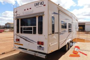 WHITE, 34FT EXTENDABLE VAN WITH 2 X HYDRAULIC POWERED SLIDE OUT ROOMS SOLAR SYSTEM 4 BATTERIES 12V/240V INVERTER, GAS STOVE WITH RANGE HOOD, GAS HOT WATER, UNDER FLOOR HEATING - ROOF MOUNTED AIR CON- WASHING MACHINE, BATHROOM, TOILET, FULL SIZE 3 WAY FRIDGE MICROWAVE, 2 X TV'S AWNING - FURNISHED, REG NO - 1TXW596 (LIC 14/5/2023) VIN# 4X4FWCG276T007692 (DR#5817)