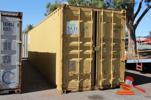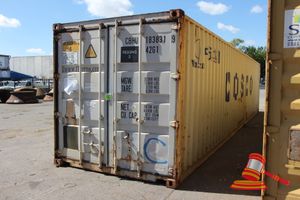 40 FOOT CONTAINER MSCU 8575564, 45G1 MUSTARD COLOUR TIMBER FLOOR, 2002 BUILD, 9 FOOT 6 INCH, SMALL PIN HOLE IN ROOF, FAIR TO GOOD CONDITION - RUSTED HOLES IN ROOF, LOAD RESTRAINT POINTS ON SIDE WALLS, NO TYNE POCKETS