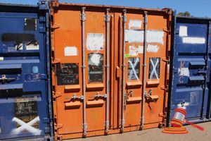 10 FOOT CONTAINER, NO SHIPPING MARKS (CONTAINER NUMBER REMOVED), TARE: 2365KG, TYNE POCKETS, STEEL FLOOR, LOAD RESTRAINT POINTS ON SIDE WALLS/BACK WALL, ORANGE COLOUR, RUST HOLES IN ROOF AND WALL, RUST EVIDENT ON STEEL FLOOR DECK, FAIR CONDITION