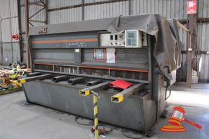 GUILLOTINE, MAKE: AMC, MODEL/DOM: UNKNOWN, SHEET WIDTH TO 3000mm, THICKNESS TO 12mm, WITH DAC-360 CONTROLLER, FOOT PEDAL, PROTECTOR GUARD TO REAR, ELECTRIC, 3 PHASE, 4 PIN PLUG. OPERATIONAL, CONDITION: UNTESTED. NOTE: REMOVAL AT BUYERS OWN EXPENSE. INSPECTION RECOMMENDED FOR SCOPE OF WORK REQUIRED. REMOVAL ON 18TH OR 19TH MAY. NO SUITABLE LIFTING EQUIPMENT ON SITE.