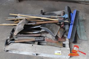 QUANTITY OF BROOMS, SHOVELS AND RAKE.