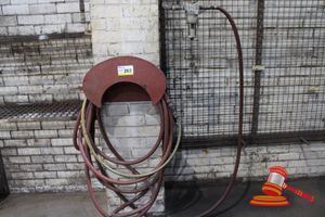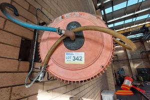 RETRACTABLE AIR HOSE REEL, WALL MOUNTED, MAKE: ALEMLUBE, MODEL: SA400N, SERIAL:1021, INCLUDES 15,000mm x 12mm HOSE. NOTE: BUYER TO REMOVE.