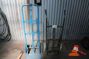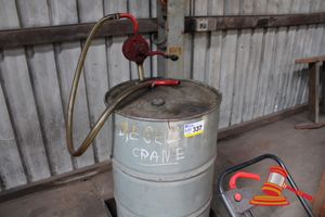 200L DIESEL FUEL DRUM ON METAL DOLLY WITH MANUAL HAND PUMP.