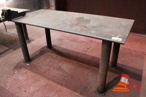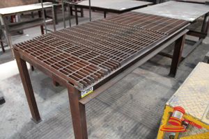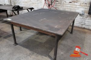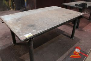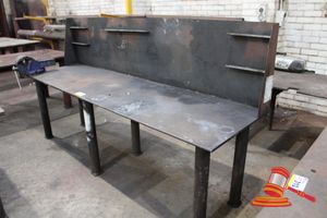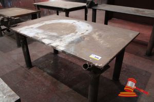 CUSTOM STEEL WELDED WORK BENCH WITH 25mm STEEL PLATE TOP, APPROX 1800mm x 1500mm x 800mm.