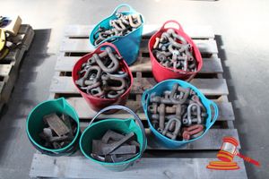 6 x PLASTIC BUCKETS WITH QUANTITY OF WEDGES, CHOCKS AND D-SHACKLES.