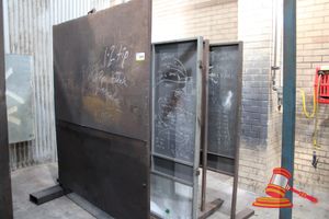 2 x CUSTOM WELDING SCREENS, FREESTANDING, GALVANISED METAL, APPROX 1910mm x 1940mm.