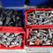 PLASTIC STORAGE CONTAINERS WITH QUANTITY OF NUTS, BOLTS, WASHERS.