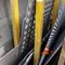 CANTILEVER STORAGE RACK, FIXED TO WALL, 2 X 720mm D x 2030mm H, WITH QUANTITY OF 35mm OD STEEL PIPE. NOTE: BUYER TO DISMANTLE/REMOVE RACK FROM WALL.