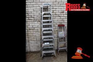 1 x 13 RUNG ALUMINIUM LADDER, AND 1 x 15 RUNG ALUMINIUM LADDER.