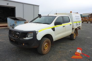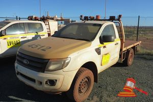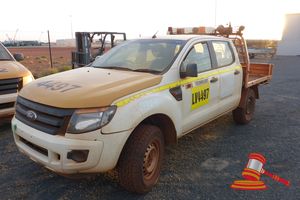 4/2013 FORD RANGER 2 DUAL CAB TRAY BACK, WHITE, 4X4, AUTO, P/S, A/C, 3.2LTR TURBO DIESEL, WORKLIGHTS, TOW ASSEMBLY, REG NO - (UNLIC) ODO - 171,952KMS SHOWING, VIN# MNAUMEF50DW180787 (A/NO - LV4497 MEP# 20221123-1181) (SK#) (*NOTE - MINOR PANEL DAMAGE TO FRONT & REAR DRIVERS SIDE DOORS, BUMPER COVER LOOSE, DUST STAINED INTERIOR, BATTERY U/S*)