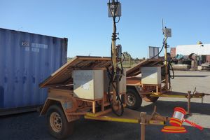M.T.G.A. 100 COMMS TRAILER, 2 X SOLAR PANELS, SINGLE AXLE, PINTLE HITCH, 3 X JOCKEY STANDS, CLARK TELESCOPIC MAST, SLIDE OUT BATTERY COMPARTMENT, CONTROL PANEL DOOR REMOVED. (09H5922) (RITM8455440)