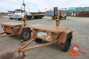 M.T.G.A. 100 COMMS TRAILER, 2 X SOLAR PANELS, SINGLE AXLE, PINTLE HITCH, 3 X JOCKEY STANDS, CLARK TELESCOPIC MAST, SLIDE OUT BATTERY COMPARTMENT, BATTERY BOX COVER MISSING. (09H6007) (RITM8509432)