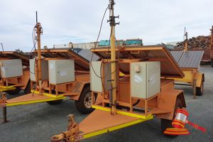 MODULAR W.A.P. TRAILER, SINGLE SOLAR PANEL, SINGLE AXLE, PINTLE HITCH, 3 X JOCKEY STANDS, CLARK TELESCOPIC MAST. (09R6542) (RITM8530735)