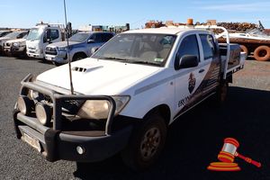 2/2011 TOYOTA HILUX 150 SER DUAL CAB TRAY BACK, WHITE, 4X4, MANUAL, P/S, A/C, 3.0LTR TURBO DIESEL, BULLBAR, SPOTLIGHTS, WORKLIGHTS, TRAY MOUNTED STEEL TOOLBOX, REG NO - 1DPR743 (LICENSE EXPIRY 26/4/2023) ODO - 288,552KMS SHOWING, ENGINE# 1KD5265043 VIN# MR0FZ22G801046354 (SK#) (*NOTE - PAINT OVERPRAY ON OUTSIDE PANELS, PAINT STAINS TO VEHICLE UPHOLSTERY, SURFACE CORROSION TO UNDERCARRIAGE)