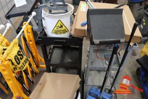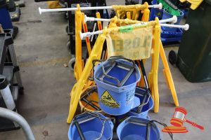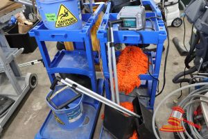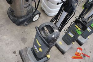 LOT ITEMS INCLUDE: Industrial Scrubbers, Vacuums, High Pressure Cleaners, Cleaning Trolleys, Floor Cleaning Equipment, Back Pac Vacuums, Wheelie Bins, Safety Signage & Barricades.