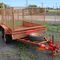 TANDEM AXLE CAGE TRAILER WITH SPRING LOADED RAMP (ORANGE) UNREGISTERED. VIN 6A5T20H2000000030. APPROX 2400 X 1500MM. INCLUDES JOCKEY WHEEL, SPARE WHEEL, 50MM HITCH. INSPECTION NOTES: MISS MATCHED TYRES, HEAVILY PITTED (STONE CHIPS). (24823271)