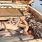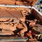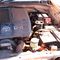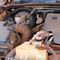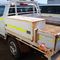 SURFACE RUST EVIDENCE TO TRAY, TORN SEATS, CRACK TO WINDSCREEN, DRILL HOLES IN DASH, STAINS TO ROOF LINER