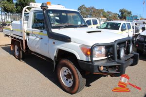 - 2013 TOYOTA LANDCRUISER VDJ79 SINGLE CAB TRAY, WHITE, 4X4, MANUAL, P/S, A/C, 4.5 LITRE DIESEL (REG# UNLIC) ODO# 226,476 KMS SHOWING ON CLOCK