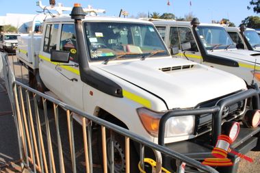 WHITE, 4X4, MANUAL, P/S, A/C, DIESEL (REG# UNLIC) ODO# 195,192 KMS SHOWING ON CLOCK, VIN# JTEBV71J70B006629, ENG# 1VD0488813, BEACON RAIL, SIDE STEPS, SPOTLIGHTS, BULLBAR, SNORKEL, TOOLBOX ON TRAY, PINTLE TOW HITCH, FL#03H8056, S44#RITM10449240, DR#66656, KEY# 96 (WP1731)