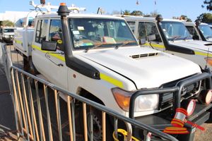 - 2019 TOYOTA LANDCRUISER VDJ79R DUAL CAB TRAY, WHITE, 4X4, MANUAL, P/S, A/C, DIESEL (REG# UNLIC) ODO# 195,192 KMS SHOWING ON CLOCK